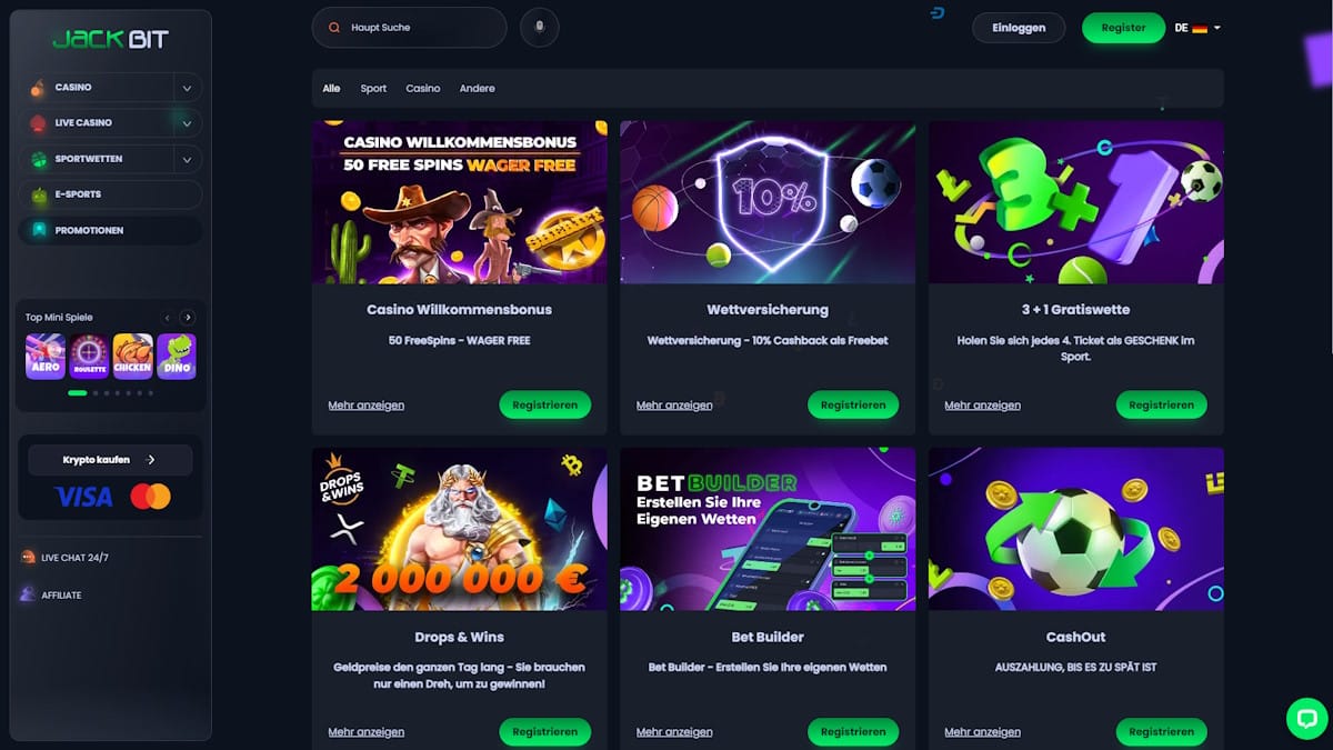 Zusätzlich zu einem breiten Casino Angebot mit zahlreichen der besten Spielautomaten, Crash Games und Live Casino Spiele, bietet CoinCasino auch Sportwetten inkl. Live-Wetten an.