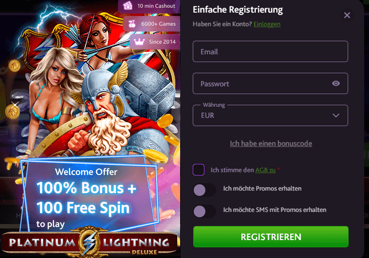 Bonus aktivieren: Vor oder während der Einzahlung sollten Sie den Bonuscode (falls erforderlich) eingeben oder den Bonus aktivieren. Stellen Sie sicher, dass Sie die Bedingungen für den Bonus gelesen haben.