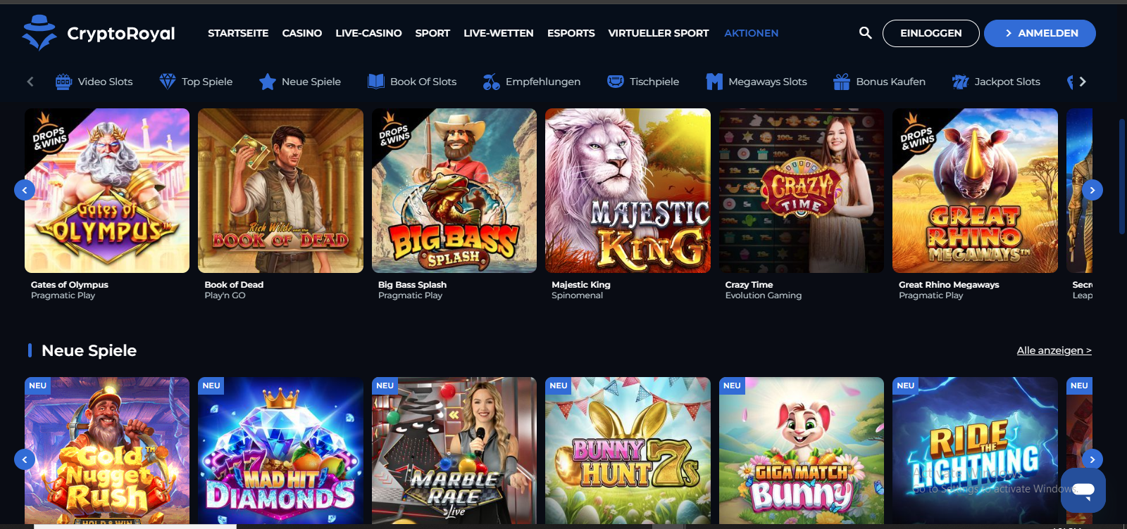 Cryptorino belegt in unserem Bitcoin Casino Vergleich Platz 1. In diesem Bitcoin Casino ohne Verifizierung erwartet Sie ein riesiges Spieleportfolio mit Slots, Live Casino, Crash Games und auch Sportwetten. Anonymes Spielen steht in diesem BTC Casino im Vordergrund.