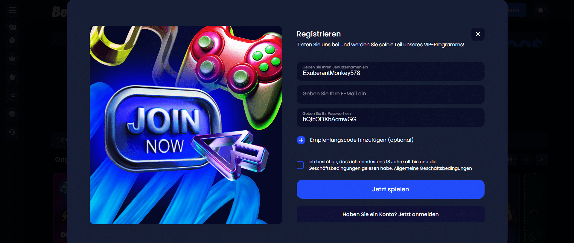 Sie müssen Sie lediglich mit Ihrer E-Mail-Adresse und einem Passwort registrieren, auf den KYC-Prozess verzichtet das Casino, so dass anonymes Spielen an der Tagesordnung ist.