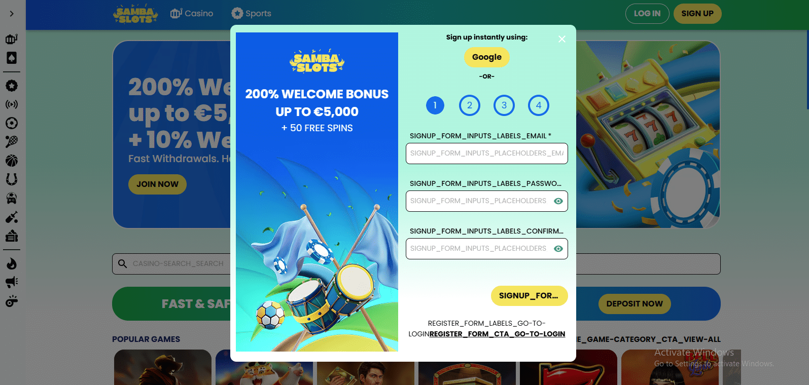 Sobald Sie die Bedingungen sowie das Mindestalter bestätigt haben, klicken Sie auf die gelbe Schaltfläche „Anmelden & Spielen“.
