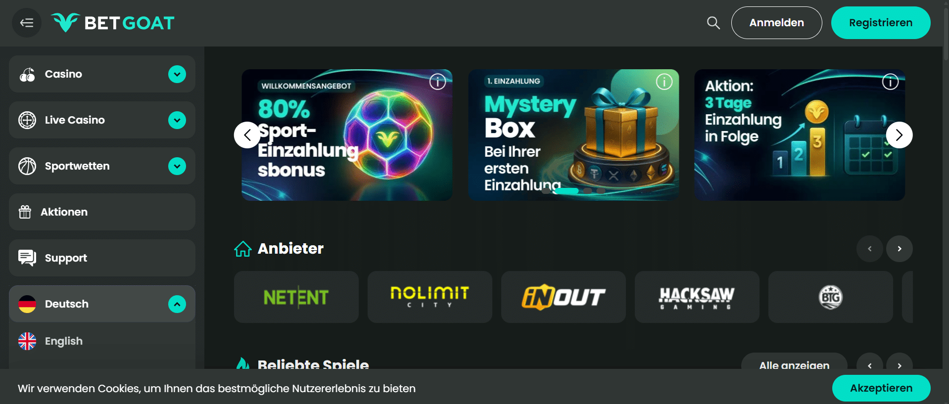 Große Auswahl an Slots, Live Casinos und Tischspielen inkl. Sportwettenbereich
