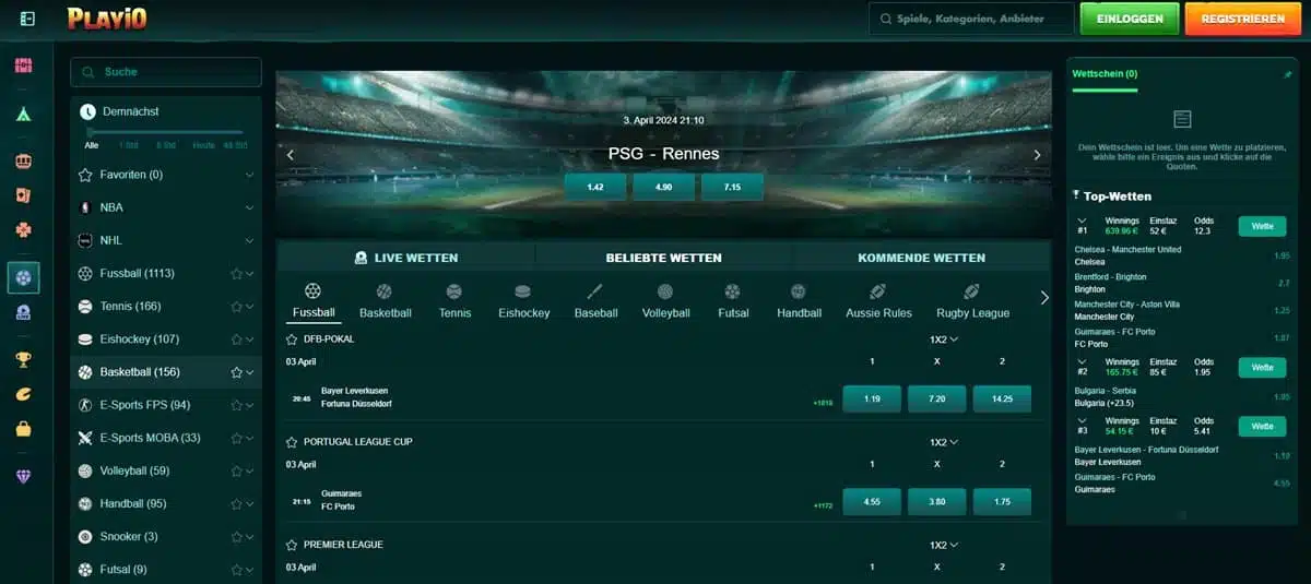 Wenn Sie eine kleine Pause vom Casino-Alltag benötigen, dann sind Sie bei Playio an der richtigen Adresse. Der Anbieter hat auch ein respektables Sportwettenangebot im Programm. Mehr als 20 verschiedene Sportarten, darunter auch eSports, stehen für spannende Sportwetten zur Verfügung.