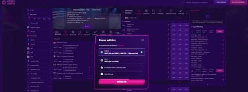 Nachdem in der linken Spalte die gewünschte Sportart, sowie die Liga ausgewählt wurde kann die Wette ohne Probleme platziert werden.