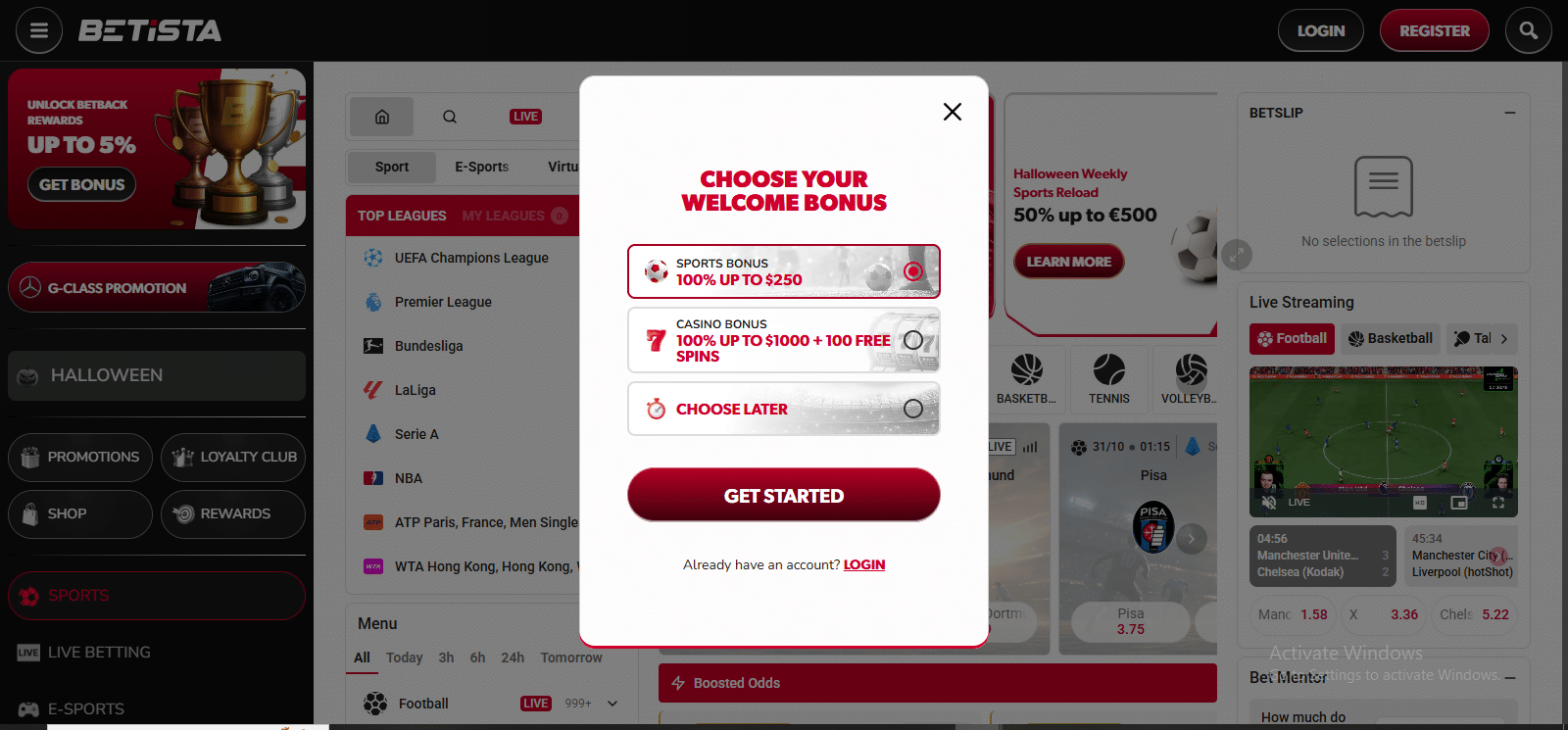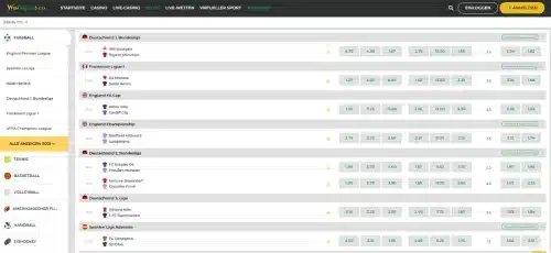 Der Pre Match Bereich von Betovo Sportwetten bietet eine Gesamtauszahlung von über 94% mit mehr als 30 Sportarten, von Fußball und Basketball bis hin zu Motorsport und Wintersport.