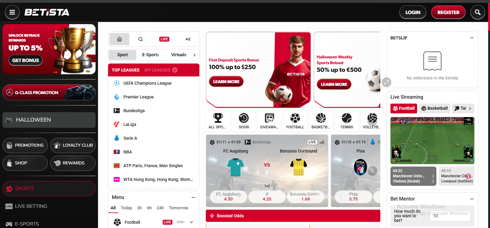 Beachtlich ist hier vor allem, dass es für Spieler keinen Willkommensbonus wie bei anderen Wettanbietern gibt, sondern stattdessen wöchentlich 10 % Cashback bis zu 10.000 Euro – ganz ohne Umsatzbedingungen.