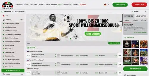 Auch Live-Wetten kommen nicht zu kurz: Im Tagesdurchschnitt stehen über 1.000 Live-Events zur Verfügung – darunter viele Nischenmärkte und Spezialwetten.