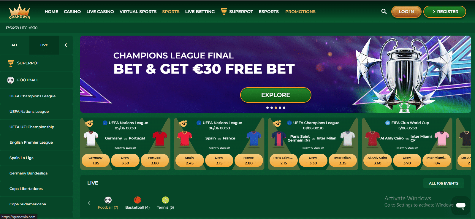 Grandwin ist ein Online Anbieter, der seit 2022 am Markt vertreten ist. Grandwin bietet Sportwetten, virtuellen Sport, ein Online- und ein Live Casino.