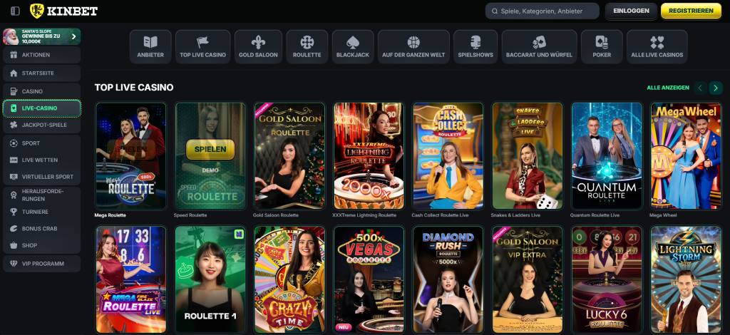 Neben den Kinbet Sportwetten ist auf der Webseite noch ein großer Spielbereich zu finden, im Online- und Live Casino. Mit einer Auswahl von über 5.000 Spielen spricht das Kinbet Casino alle Spielertypen an, egal ob das eigene Faible den Slots, Roulette, Blackjack, Video Poker Automaten, Rubbellosen oder Live Casino Spielen gilt. Kinbet arbeitet mit 100 Providern zusammen, die für die erforderliche Abwechslung sorgen und zudem für die Fairness der Casino Spiele verantwortlich zeichnen.