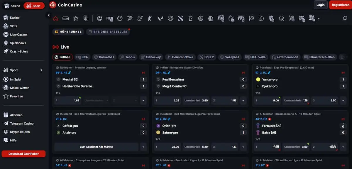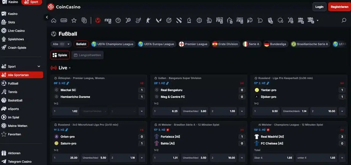 Cashed punktet außerdem mit einer richtig guten Wettauswahl. Und das nicht nur Pre-Match, sondern auch Live. Neben König Fußball und UFC Wette überzeugt insbesondere die Abdeckung im Bereich Tennis. Ein weiterer Pluspunkt: Cashed kann sich auch in Quotenvergleichen regelmäßig durchsetzen. So lohnen sich Ihre Tipps besonders!